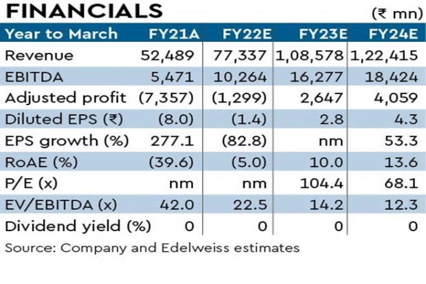 Outlook: Strong show on recovery – We maintain the target EV/Ebitda of 21x and roll over the valuation to Jun-23e, yielding a revised TP of Rs 347. Key re-rating triggers stay improvement in Pantaloons/e-commerce traction. Losses from new initiatives could drive a de-rating.