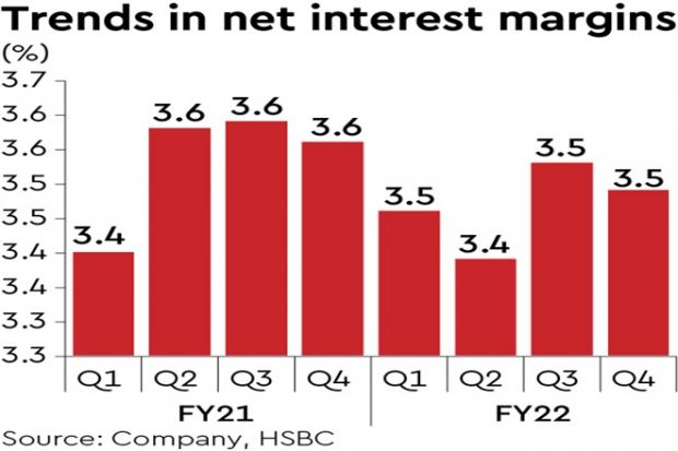 NIMs moderated 4bp q-o-q to 3.5% as cost of funds increased 6bp q-o-q. There was pressure on deposit mobilisation as average CASA (up 2% q-o-q) and retail TD (down 1% q-o-q) growth remained muted.