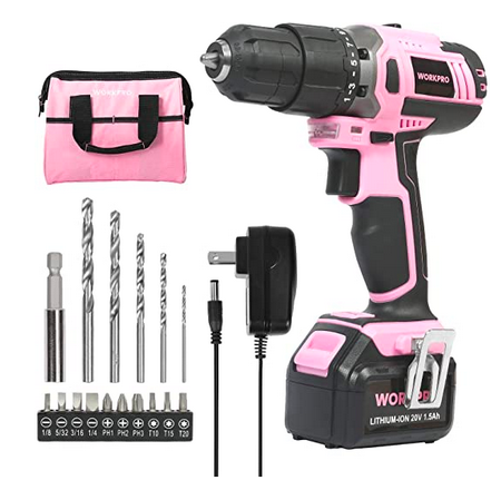 Get this WORKPRO Pink Cordless 20V Lithium-ion Drill Driver Set for just $39.99 shipped!