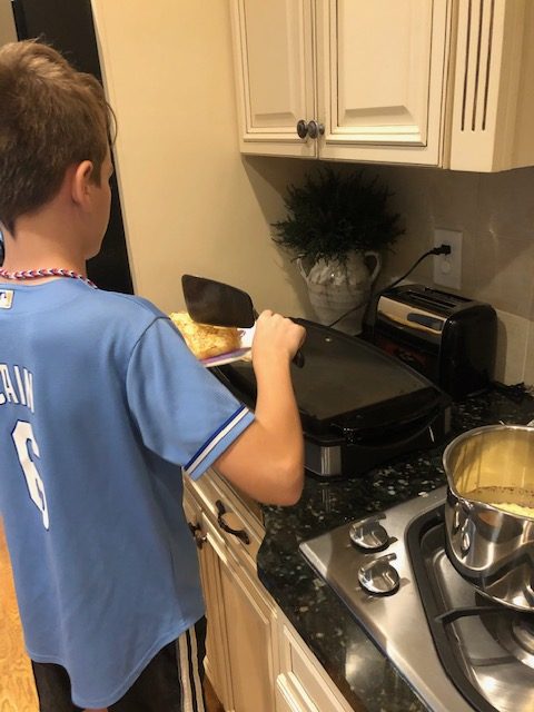 He loves to help me in the kitchen. Flipping pancakes and making eggs for breakfast are some of his “specialties”.