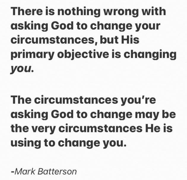 Ultimately, prayer isn’t about changing and fixing other people or situations; it’s about changing us. I love this quote by Mark Batterson (above) that I recently read in his book, Win The Day.